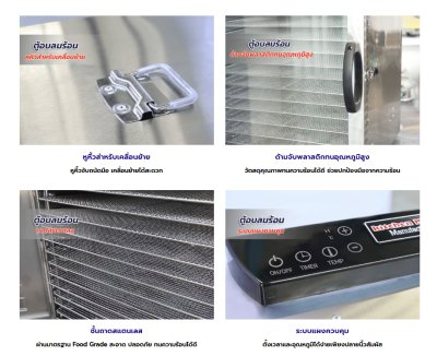 สามารถใช้ผลิตได้หลากหลาย ทั้งในกลุ่มผลไม้/สมุนไพรอบแห้ง/ ตากแห้ง ผู้ผลิตอาหารทะเลตากแห้ง ปลาตากแห้ง/อบแห้ง ผู้ผลิตขนมคบเคี้ยว/ของทานเล่น ผู้ผลิตอาหารเพื่อสุขภาพ (Clean Food) อาทิ